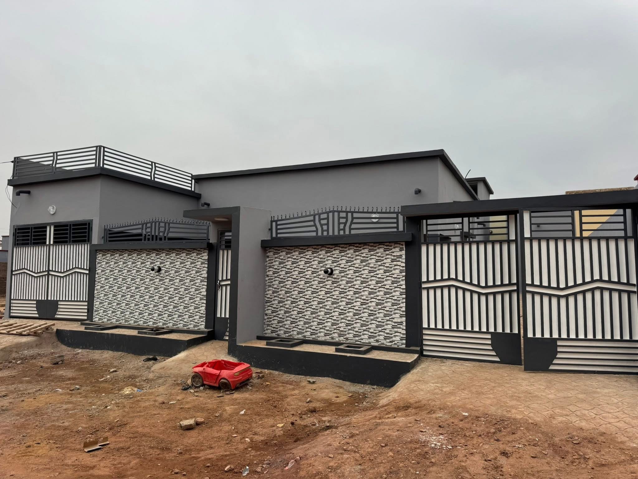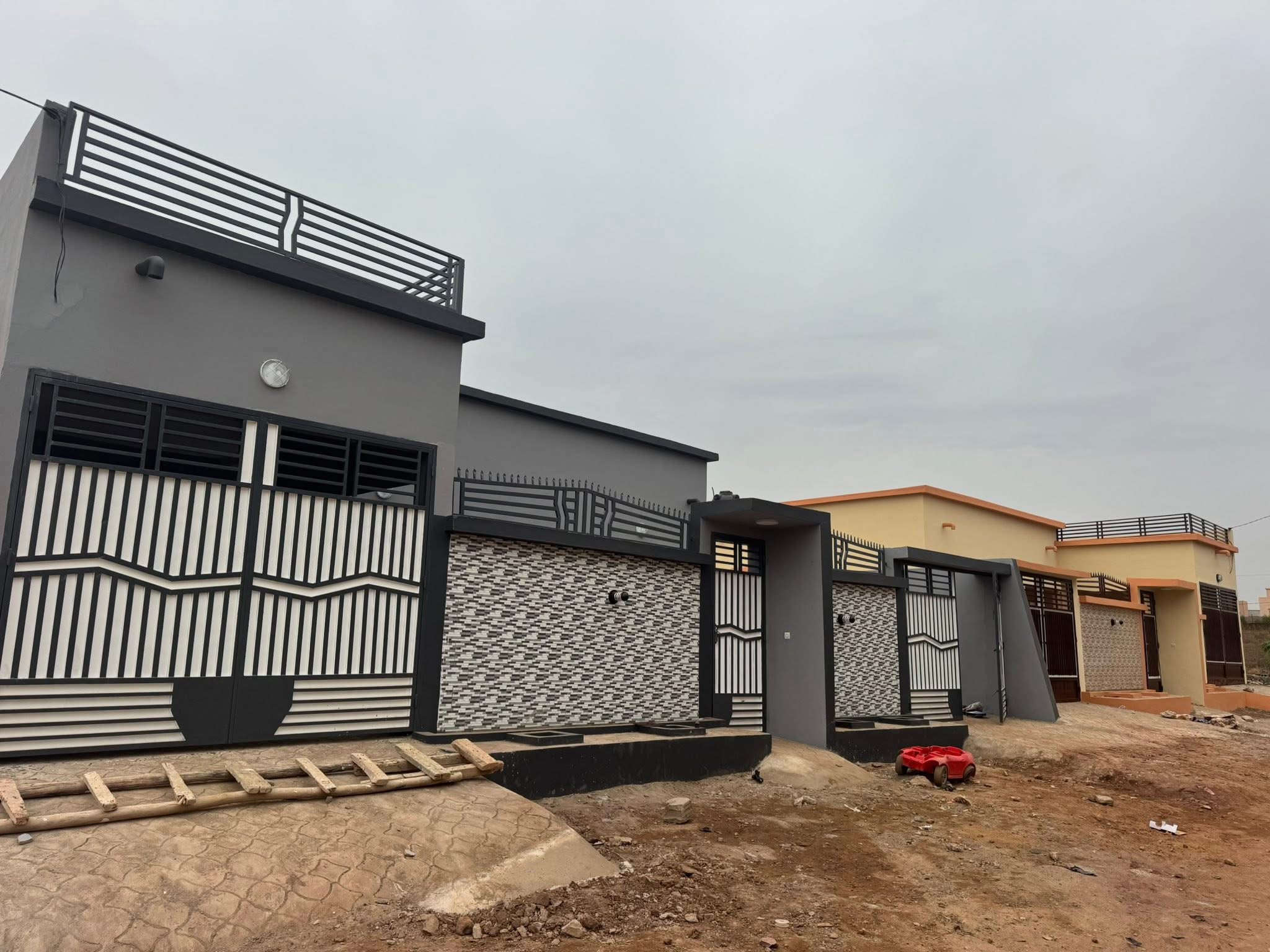 • 3 chambres dont chacune avec douches salon cuisine moderne magasin une annexe toilettes visiteurs double parking
