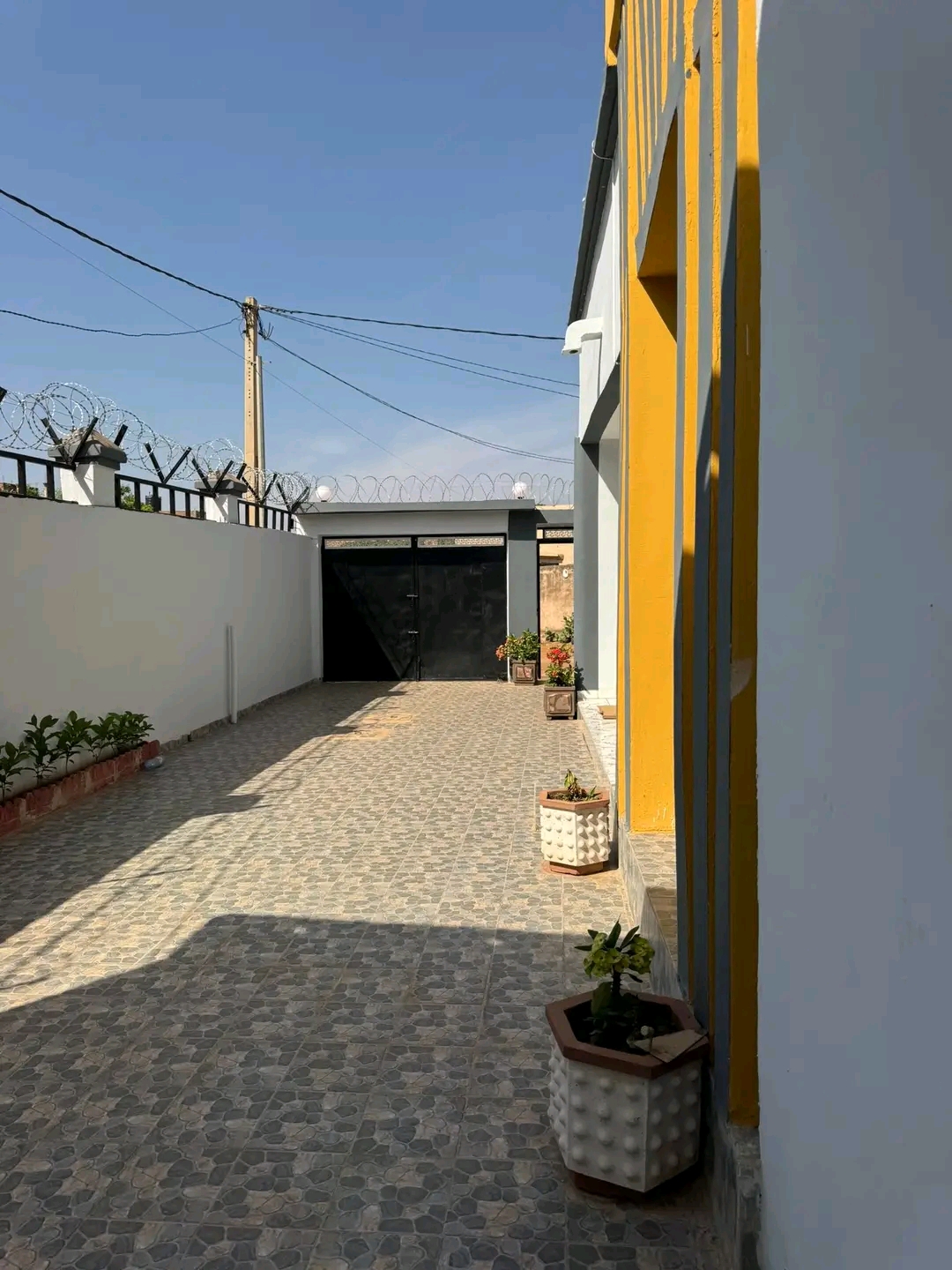 03 chambres salon 03 douches cuisine débarras garage 3annexes toilettes visiteurs.